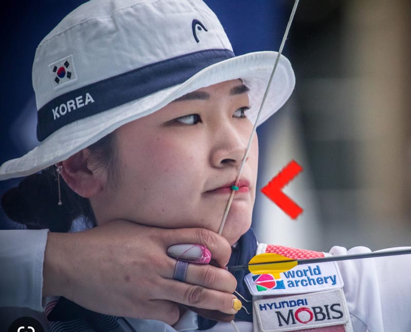 Below we will give examples of some archer’s anchor points. Everyone’s natural anchor point will be slightly different. Whilst it can be modified, do not try to ‘force’ a certain type of anchor point when it does not work for your natural full draw.
